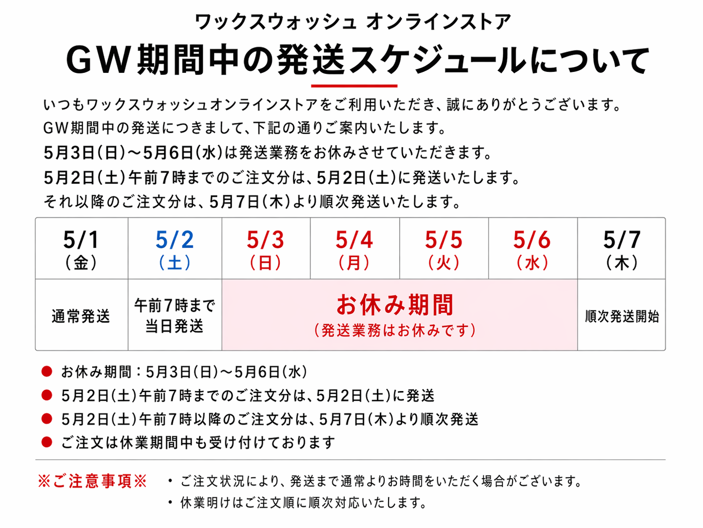 GW期間中に頂いたお問い合わせは、7日より順次お返しさせて頂きます。